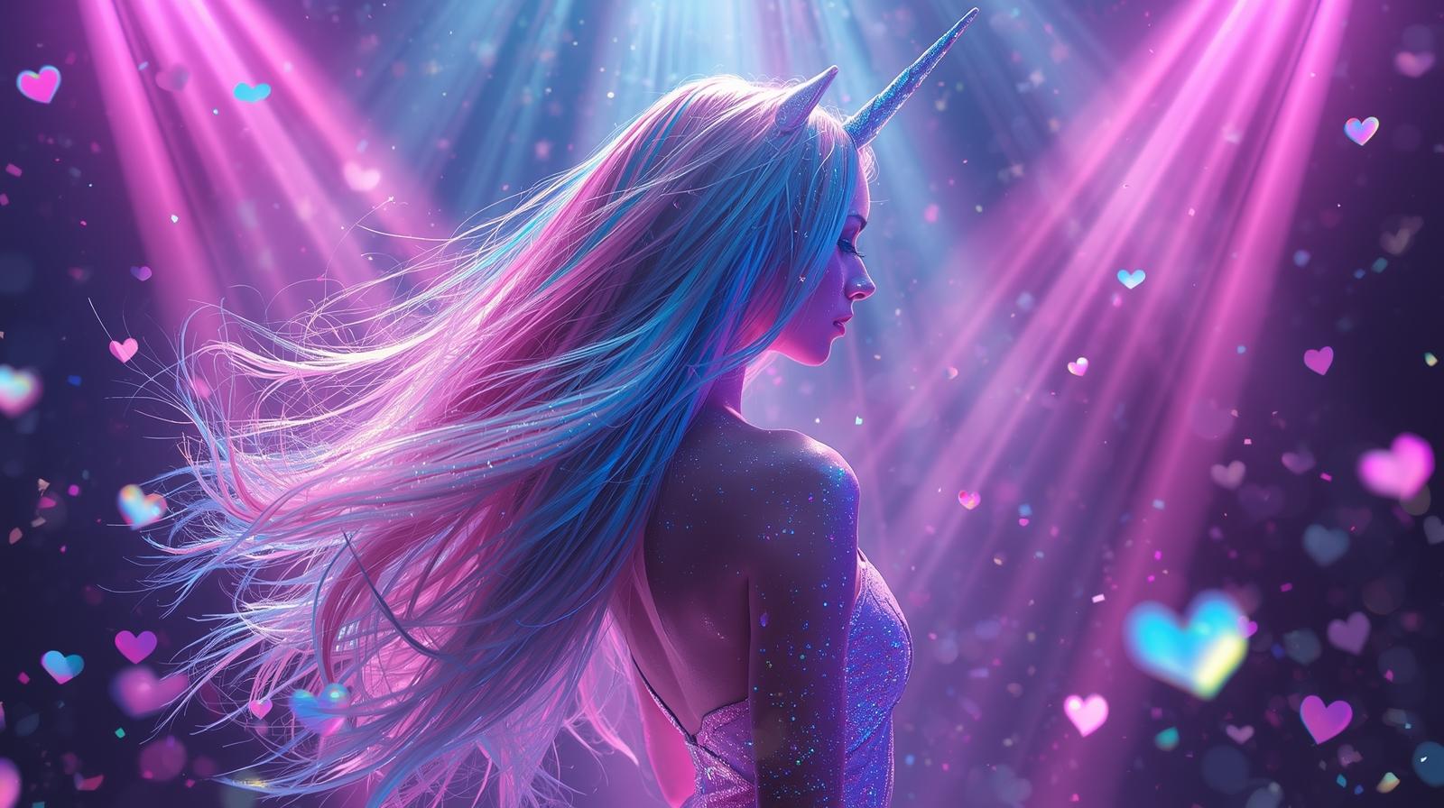 Neon kisses, glitter promises, and a very useful horn. Come play under my lights.