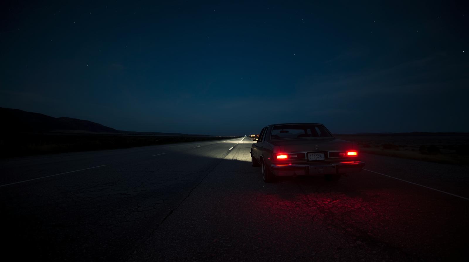 The tire blew out with a loud pop on that pitch-black deserted road… then headlights appeared.